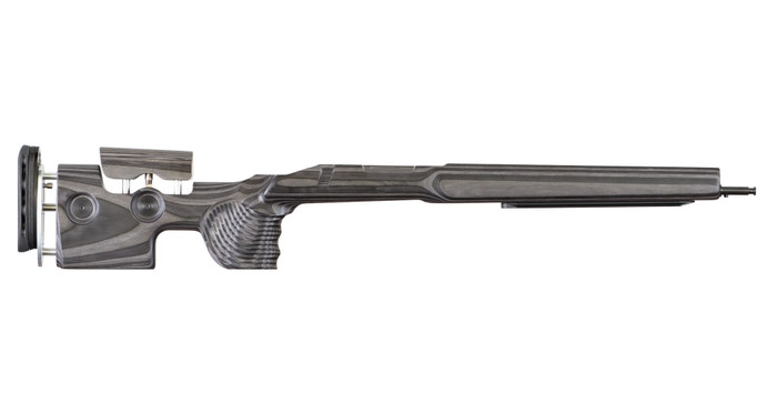 Der GRS Loke ist ein beidhändig bedienbarer Laminatschaft für Langwaffen, PRS und NRL Schießen. Er ist für die Montage von Arca-Schienen und dem GRS Spigot vorbereitet. Der Schaft hat ein schlankes Design und einen strukturierten Griff mit Daumenauflagen, die in den fast 90-Grad-Winkel des Griffs integriert sind.